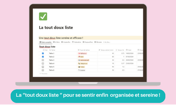Renseigne ton nom, ton prénom et ton email ici pour recevoir ton template Notion "La tout doux liste" !